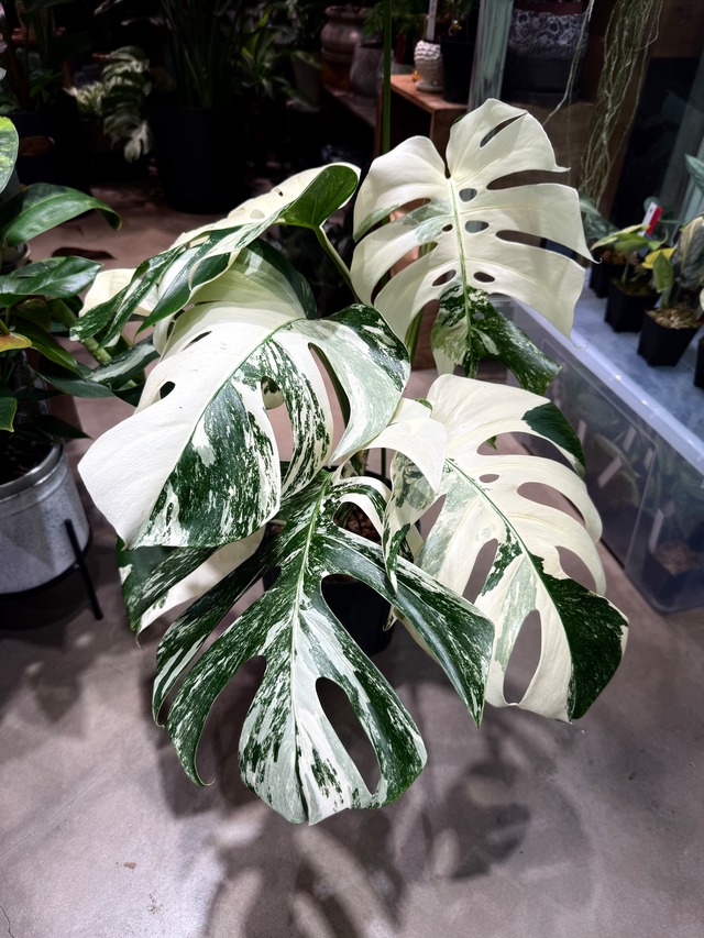 ご覧いただきありがとうございます♪ こちらの株をお送りします とんでもなく綺麗な極上斑入りのタイコンです 全ての葉がハイポテンシャルなので今後展開する葉も期待出来ます!! 滅多に出ない良質なモンステラを是非! 大まかな目安とはなりますが 高さ 約75cm 葉が大きい物で約30cm 鉢8寸となっております 箱、梱包代200円が含まれております 注意事項をよくお読みになってからのご購入をお願いいたします